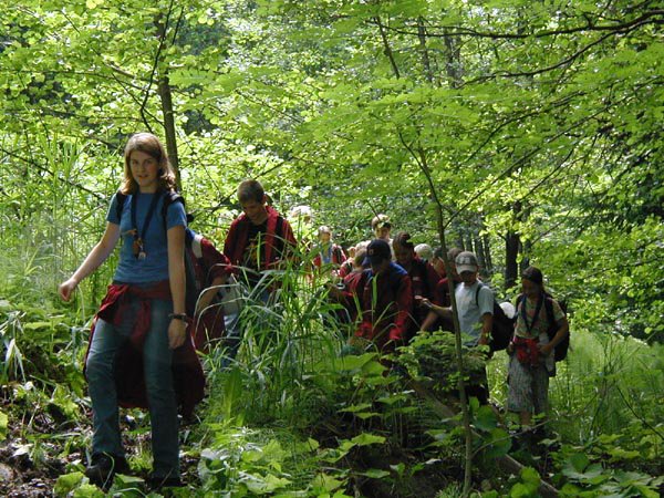 Die Caravelles und Explorer besichtigen während ihres Osterlagers in Rom schon einmal den Lagerplatz für das Sommerlager der Guides und Späher des selben Jahres.